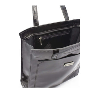 La Cartera María Negra Charol 🖤✨ tiene un estilo muy europeo. Con su bolsillo exterior y agarres de correas medianos dan forma glamurosa para tus outfits. ¡Pero no te dejes engañar!
